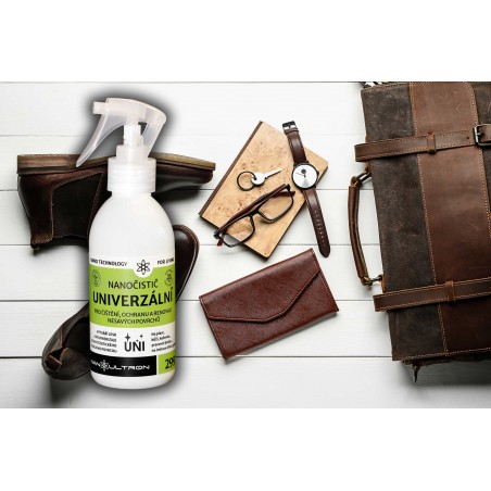 Univerzální nanočistič a ochrana nesavých materiálů. Na plast, kůži, koženku i pracovní desky. Na imitaci dřeva i gumu.